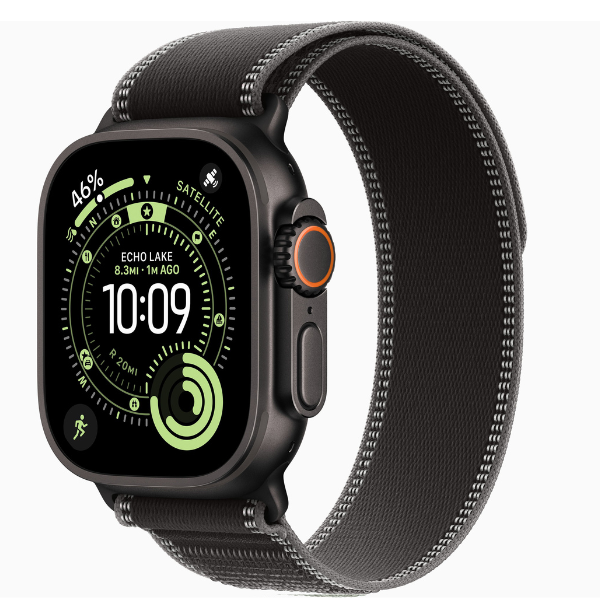Apple Watch Ultra 3 GPS + Cellular, 49mm Natural Titanium Case & Black Titanium Case with Black/Charcoal Trail Loop